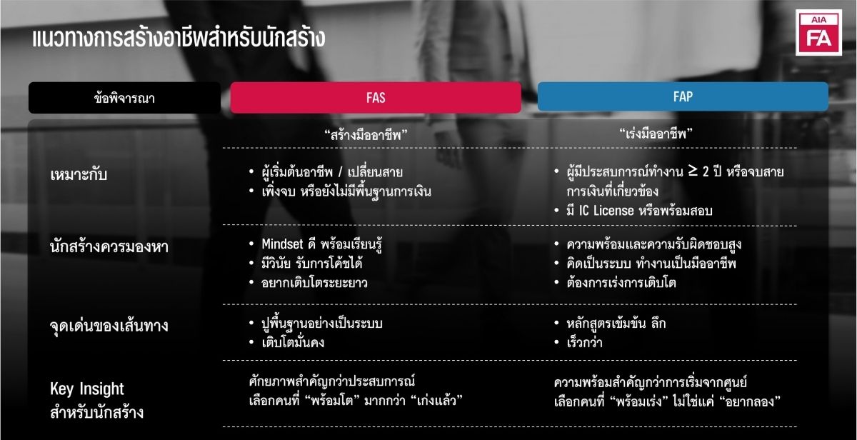 โปรแกรมสำหรับตัวแทนประกันชีวิตและที่ปรึกษาการเงิน AIA